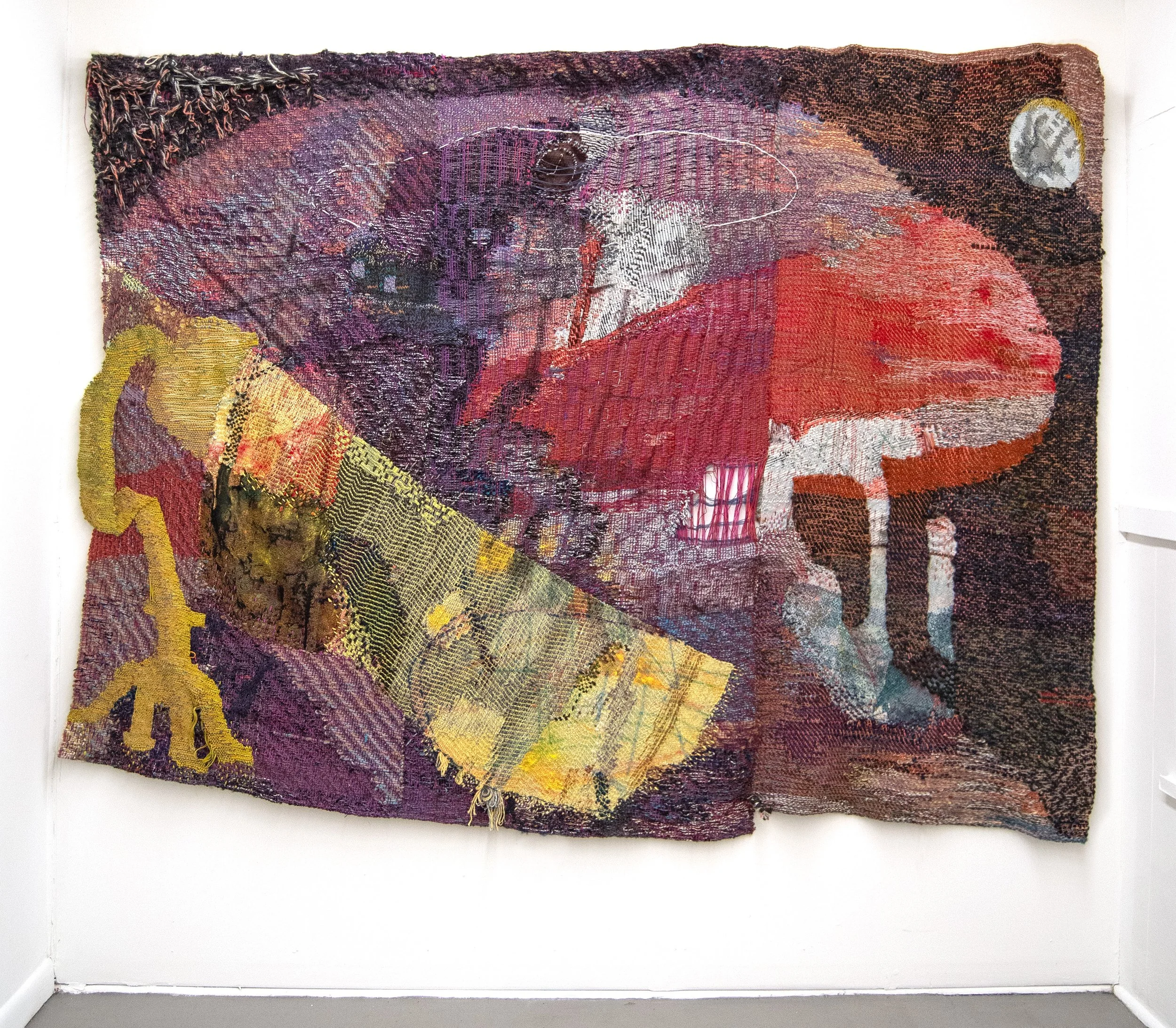 Diorama of an Eclipse96” x 120”Handwoven and Knitted Fabric, Jacquard Woven Fabric, Paint < Back Next >
